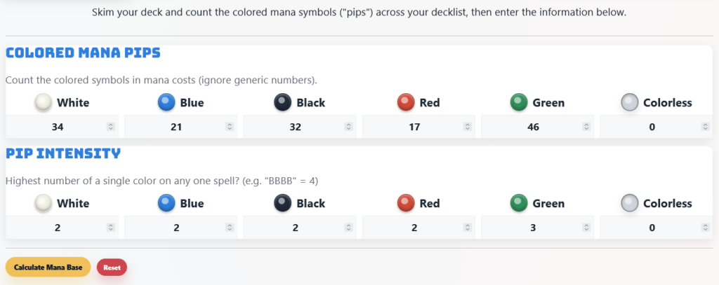 Click “Calculate Mana Base”